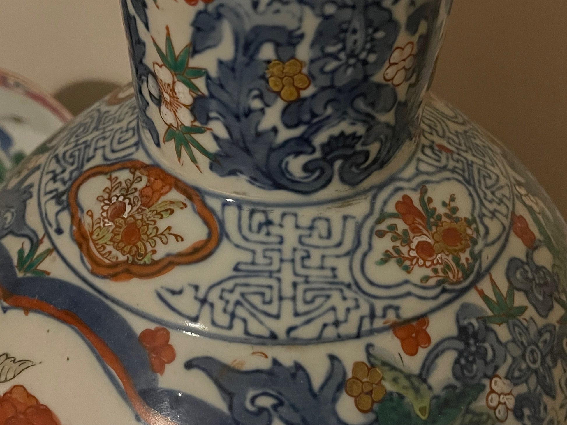 一对大清光绪6字款青花加彩万岁纹凤尾尊,两面花鸟纹开光。清晚期官窑出口欧洲瓷器。
