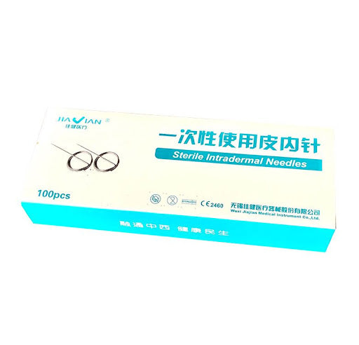 100 pieces needles. Individually packed. One needle per blister chamber in a stopper. Easy removal.